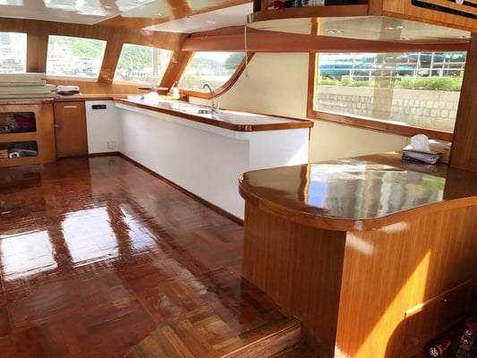 This is a 65ft motor cruiser with a maximum capacity 40 pax. Fitted out with air-conditioning, karaoke and speaker systems outside and inside the boat.